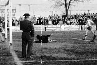 Recibo una fotografía que demuestra que esos jueces que vemos pero no ven, viendo lo visto cada vez que les vemos, no son de ahora y además son de origen pátrio como demuestra la imagen. Impresionante documento como diría J.María García, aunque pueden surgir dudas ya que el uniforme del colegiado en cuestión induce a las mismas. Sería bueno que alguien nos aclarase la situación ya que podría ser que el señor del tricornio esté vigilando al portero para evitar su fuga, hay que descartar la posibilidad -dada la presunta edad de los contendientes- que sea uno de esos papás que se colocan de manera estratégica para "colocar" a su niño. Sea lo que sea, mucho mérito para el de la benemérita ya que un disparo con esos balones podría dejarle sin la parte superior del uniforme.Futbol Base y mas