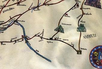 Desde Pamplona..., donde estaban otros que bajaban de las tierras vascas desde antes, por Baztan, desde Danchirenea y Urdax y dijeron ir el por el alto de Velate y van sin temor sarraceno, que viven más abajo y las sendas están guardadas por los nobles y nuestros señores.
