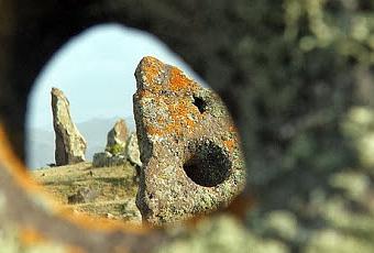 Alrededor del 84 % de las piedras cuentan con un agujero circular, aunque sólo 50 % de las piedras sobreviven. Ellos han sido de interés para Rusia y Armenia archaeoastronomists que han sugerido que las piedras de pie podría haber sido utilizado para la observación astronómica. Esta sugerencia fue hecha por los observadores que señalaron cuatro agujeros de piedra que podrían ser reclamados para ser avistados en el punto en el horizonte donde el sol sale en verano . Otras cuatro personas de pie piedras mostrar los agujeros que los observadores afirmaron punto donde el sol se pone en el mismo día. Sin embargo, esto debe seguir siendo una conjetura que los agujeros son relativamente protegidas de la intemperie y puede incluso no ser prehistórico de origen.