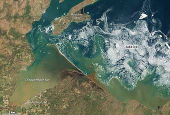 El Operativo Land Imager (OLI) del satélite Landsat 8 capturó la imagen superior el 23 de mayo de 2014, el inicio del fin de semana de Memorial Day (e inicio oficial del verano en los Estados Unidos). La segunda imagen fue adquirida el 8 de junio de 2014. Ambas muestran el lago Superior cerca de Chequamegon Bay, Wisconsin, cerca de 60 millas al este de Duluth, Minnesota.