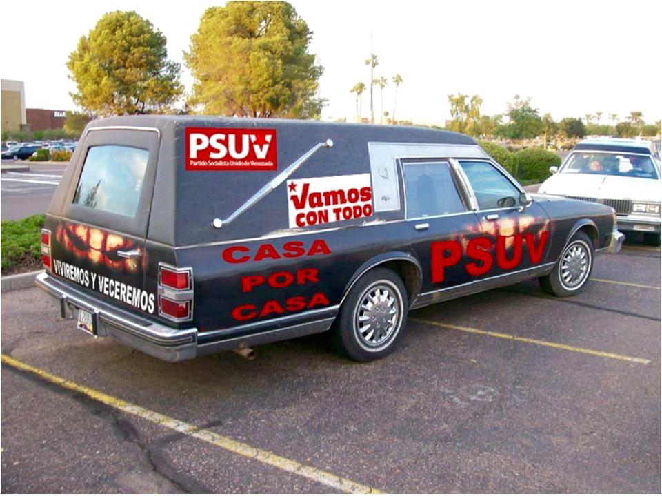 No me cansaré de hablar del tema, porque es ilógico que se deje pasar con la normalidad que dejamos pasar cualquier tema irrelevante. Antes de la dictadura había inseguridad y por ello ya teníamos una idea bastante real de la muerte, ahora con la dictadura chavista la muerte es tan común como ver el Caracas – Magallanes o ahora hacer cola para comprar comida o entrar a un centro hospitalario. Más de 200.000 muertos después, con famosos de por medio, preocupa ver que la “oposición” no actúe ante esta terrible situación y preocupa más que los allegados a la dictadura callen ante lo que es evidente.(Fuente: http://es.twtrland.com/)