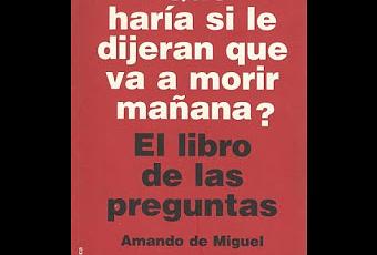 Releo un libro ameno, simpático y con altas dosis de inteligencia, que lleva por título El libro de las preguntas y del que es autor el sociólogo Amando de Miguel (Martínez Roca, 1999). Lo leí en octubre de 2004 y ahora me apetecía volver a sus páginas, donde subrayé muchas líneas y llené los márgenes de asteriscos y signos de interrogación: señal clara de que el volumen me interesó e hizo pensar.