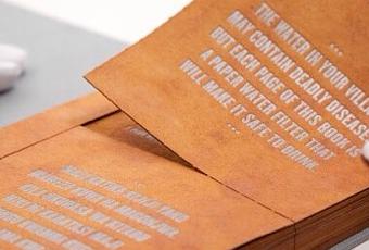 Por favor, perdóname este chiste, pero me pareció bueno para abrir con este caso que es realmente muy bueno. Es un libro que está impreso sobre filtros para agua, lo que quiere decir, y lo verás en el video, lo colocas en un recipiente, agregas agua contaminada, como la que hay en diferentes lugares en donde escasea este vital líquido, y por el filtro el agua sale lista para beber, reteniendo el 99.9% de las impurezas, bacterías y bichos, evitando así el cultivo de enfermedades.