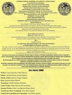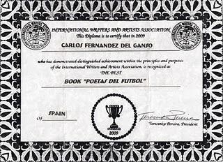 El libro "POETAS DEL FÚTBOL" de CARLOS FERNÁNDEZ, premiado por la Asociación Internacional de Escritores y Artistas,como mejor libro de ensayo de 2009.