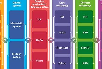 El panorama tecnológico de lidar se divide en cuatro áreas: proceso de medición, emisor, mecanismo de dirección del haz y receptor. Además, hay varios otros factores a considerar, como la elección de la longitud de onda y la selección del sistema óptico, que añaden mayor complejidad a las opciones tecnológicas de LIDAR.