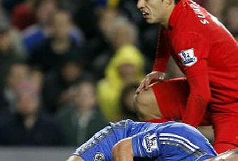 Desde el inicio, la visita manejó la posesión, buscando desarrollos pacientes para encontrar a Luis Suárez, principal argumento ofensivo del equipo rojo. Pese a no tener el control de las acciones, Chelsea encontró el primer gol gracias a un tiro de esquina. Agger perdió la marca de Terry y el capitán no perdonó. Por desgracia para Di Matteo, el autor del gol, que volvía después de una suspensión, no pudo culminar el primer tiempo y abandonó el campo de juego con una lesión que se presume ligamentaria.