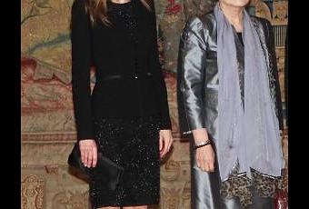 Dña. Letizia acertó en esta ocasión con un conjunto de vestido con aplicaciones de pedrería, de Felipe Varela, y chaqueta negra con tapas de raso, que lució, entre otras ocasiones, entre ellas en los Premios Mujer Hoy en Diciembre del año pasado. (Imagen inferior). La Princesa no llevaba joyas salvo sus pendientes de diamantes en forma de estrella, zapatos de Magrit y bolso de mano de raso negro.