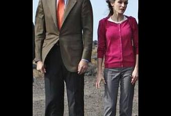 La Princesa eligió un look casual, camisa blanca sin cuello, pantalón gris, chaqueta fucsia de punto con las mangas remangadas, bolso a juego y bailarinas. Sin duda un estilo muy cómodo, como para ir una mañana de compras. La Princesa de Asturias quizá habría estado más adecuada con unos zapatos o botas de suela más gruesa para caminar por la tierra volcánica de la isla, o una blazer, o quizá un trench corto o una parca, tenía muchas otras opciones....