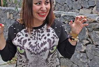 Así que cuando vi esta sudadera (con lo que a mi me gusta una sudadera), con ese leopardo (con lo que me gusta a mi un gatete) y, para rematar, con esas tachuelas (con lo que me gusta a mi un cacharrerío), no pude evitar llevármela a casa.♪ ♫ Girl gone wild - Madonna ♫ ♪
