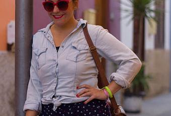 Mono y cuñas: C&A / Camisa: Lefties / Gafas: H&M (rebajas) / Flor : Blanco / Bolso: Stradivarius / Reloj: Casio / Anillo: Vintage / Labios: Rimmel London Colección Kate Moss Nº22.