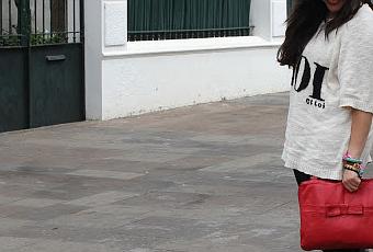 ¿El toque de color? El bolso y los labios, rojos, cómo no :) Y las pulseras, que me siguen encantando de Artegiftscr Piezas de Bisutería.