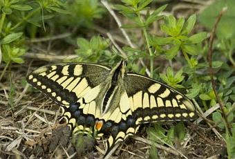 Al igual que la Apolo, se trata de una mariposa muy grande, que puede llegar a los 85 mm de envergadura y que tiene un diseño y un colorido inconfundible. Esta especie presenta dos generaciones, una que vuela desde abril a junio y otra que aparece a finales de julio y vuela durante todo el mes de agosto. Ayer, en una zona costera pude disfrutar durante unos segundos de una de estas mariposas que hacía tiempo que no veía. Sus alas perfectas y sin trazas de desgaste indicaban claramente que había emergido de su crisálida hacía muy poco tiempo.