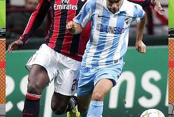 Antes, el conjunto italiano había arrancado el choque buscando la espalda de Sergio Sánchez, la única novedad en el once malaguista respecto a la alineación frente al Milan en La Rosaleda. Por el contrario, el Milan hizo cinco variaciones de inicio, con Abbiati, Abate (De Sciglio le sustituyó al comienzo por una lesión), el «carnicero» De Jong, Bojan y Pato.