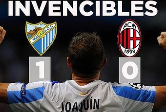 La victoria soñada. Este Málaga sin límites puso ayer pie y medio en los octavos de final de la Liga de Campeones tras superar con creces al Milan, uno de los grandes de Europa. Las huestes de Pellegrini fueron fieles a la expectación despertada antes del partido, calificado de histórico con toda la razón del mundo. El pleno de puntos en el torneo continental, con nueve en tres encuentros merced a los siete goles a favor y ninguno en contra, hablan a las claras de un Málaga líder, grande, colosal, poderoso y descarado. La ovación unánime de unos aficionados que cantaron el himno a voz en grito a riesgo de quedarse afónicos fue el mejor premio para un equipo bendecido por los dioses. Por muy venido a menos que esté el Milan actual, llegaba a La Rosaleda invicto en la Champions, lo cual no desmerece el impecable partido de un Málaga llamado, a partir de ahora, a empresas de un fuste mayor si cabe que las que ha emprendido este año con la solvencia de su exquisito juego. El hombre del partido fue de nuevo Joaquín, que a su enorme calidad futbolística une esta temporada una fortaleza mental a prueba del mejor especialista en psiquiatría. El portuense anotó el gol más importante de la historia del Málaga, el de la victoria contra un grande de Europa y el que pone al equipo, salvo fracaso no contemplado en este momento dulce del equipo, en el bombo del sorteo de octavos de final de la máxima competición continental. Da la impresión de que al jugador andaluz le va la marcha de introducir incertidumbre y emoción en los partidos de su equipo. Así ha sucedido, al menos, en los dos últimos en el plazo de cuatro días. Si el sábado, contra el Valladolid, mandó a la grada el balón en el lanzamiento de un penalti y se resarció dos minutos después con el gol del triunfo, ayer repitió la historia. Jesús Gámez fue derribado por Constant dentro del área y Joaquín no dudó en coger el balón para intentar quitarse cuanto antes los demonios de encima. Desde la Tribuna sus gestos no denotaban confianza en sus posibilidades, pero el portuense se había puesto esa penitencia y allá iba con ella. Mandó de nuevo alto el balón tras dar en la parte de arriba del larguero. Lo que podía haber sido un 'gol psicológico' (corría el minuto 45) se fue al limbo del graderío de Fondo. Pero el ahora delantero no dejó que la espada de Damocles terminara por hacer su trabajo, ni tampoco la afición, que lo premió coreando su nombre con fuerza cuando el equipo se retiraba a los vestuarios. Esta vez tardó más, casi veinte minutos, en remediar su error, pero lo hizo a lo grande. Recogió un buen pase de Iturra al hueco, controló el balón y lo colocó por bajo junto al poste izquierdo del portero, con poco ángulo, pero el suficiente como para convertirse en el 1-0. Pero la jugada no fue fulminante porque el cuero dio en el poste y buscó el otro palo sin decantarse por entrar en la portería hasta el final. El suspense bendijo el lance esperado por una afición que enloqueció desde entonces y hasta el final del encuentro. Había empezado el Málaga el partido dubitativo y con errores en las entregas, provocados por la adelantada defensa y la ordenada presión del rival. La disciplina táctica italiana hizo mella en el conjunto local en esos primeros compases. Pero el grupo entrenado por Pellegrini iba a lo suyo, que no es otra cosa que impartir lecciones de fútbol. Pronto se hizo el cuadro de La Rosaleda con el control de un partido que, si presentaba varias incógnitas antes de celebrarse, sobre él sí pesaba la certeza de que el equipo anfitrión tendría muchas dificultades para sacarlo adelante. Aparece Isco Fue Isco el que se echó el equipo a la espalda al ecuador de la primera mitad. El benalmadense respondió a las expectativas despertadas en anteriores duelos y se hizo amo y señor del balón, un objeto que amaestra con la habilidad de un malabarista y que esconde con el arte de un mago. De un lado a otro del campo se desplazó sin descanso el ídolo malaguista perseguido por jugadores rojinegros, llamados a sufrir su calidad y presenciarla en primera fila. El Milan, que sorprendió a todos colocándose con un atrevido 3-4-3 en su disposición inicial, ofreció numerosas variantes de ese sistema obligado por un Málaga cuyos jugadores vuelven loco a cualquiera con sus cambios de ritmo, apoyos continuos y caracoleos. No en pocas ocasiones las huestes de Allegri le hicieron un guiño al 'catenaccio' defendiendo con seis hombres, temerosos de la enorme calidad que atesoran los hombres de Pellegrini. La otra cara de la moneda la ofreció el conjunto milanés en el tramo final del encuentro, cuando alineó a cuatro delanteros con las desesperadas incorporaciones de Pato y Bojan. De nada le sirvió al técnico visitante echar mano de todo su arsenal ofensivo, ya que si algo caracteriza a este Málaga que juega como los ángeles es la fortaleza de su empalizada. Caballero no sabe lo que es recoger el balón desde dentro de su portería en la Champions y en la Liga es el menos goleado. Puesto a superar al rival en todos los aspectos del juego, el Málaga hasta cometió más faltas que el Milan, palabras mayores cuando el rival es italiano. ¡Que siga la fiesta!