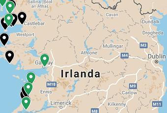 El mapa señala en negro los lugares de los naufragios y en verde los sitios de interés que guardan una estrecha relación con la Armada invencible. Debes de tener en cuenta que algunos de los puntos señalados son aproximados, ya que se basan en descripciones de la época donde el GPS no existía ; )