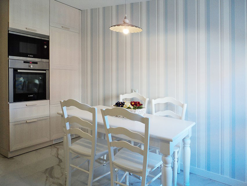 Evocar el mar en pleno interior de la Península puede parecer una friolera temeridad.Sin embargo, nada más erróneo, sobre todo si descubrimos el precioso y acogedor resultado de esta impresionante cocina burgalesa.María José buscó coordinar el blanco con un espectacular papel y pintura en nuestro azul mar.¿Quieres descubrirla?