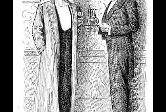 -Bueno, ¿quién es usted? - preguntó-. No puede ser el nuevo mayordomo. No tiene cara de mayordomo. Parece un…, un… -Se apoyó pensativo en la puerta y al fin dijo-: vendedor de licores. Un anticuado y arruinado vendedor de licores. -Dio un paso hacia dentro y llamó a la izquierda de la puerta-: ¿No tengo razón, Wendy?