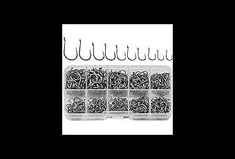 WEONE 500 Piezas Pesca anzuelos 10 Tamaños articulos de pescacarbono Pesca Anzuelo mordaz...