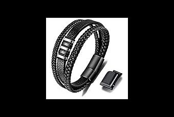- Pulsera negra para hombre de piel de becerro, acero inoxidable cepillado y un resistente cierre magnético. No contiene plomo ni níquel, por lo que no es perjudicial para la salud. Esta pulsera es especialmente adecuada para alérgicos. De alta calidad, diseño moderno