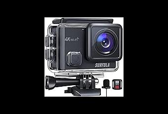- 【Cámara Deportiva 4K 20MP】La cámara Surfola SF230 Ultra HD 4K cuenta con opciones de resolución de video de alta calidad, incluyendo 4K profesional (30fps), 2.7K (30fps) y 1080P (60fps) para su preferencia. La resolución de captura de fotos de 20MP hace que las fotos sean mucho más claras que las tomadas por cámaras de 16MP. La lente de vidrio óptico de 6 capas le brinda imágenes vívidas.Un regalo de Navidad imprescindible para tus hijos