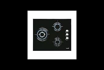Cata Placa Cristal Gas, Modelo CIB 6021 BK, 3 Fuegos, Ancho 59 cm, Encimera de Gas Butano, Acabado en Cristal Negro