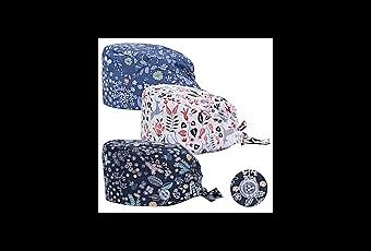 3 Piezas Gorro Quirúrgico con Botones Ajustable para Hombre y Mujer Gorro de Chef Gorro de Toalla para Médico Dentista Enfermera(Estilo Floral)