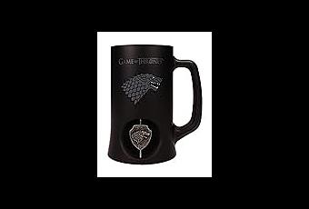 - UNA JARRA DE CERVEZA DE 590 ML CON ASA. Tómate tu bebida favorita en esta jarra personalizada de Juego de Tronos, cuya capacidad es de 590 ml y su práctica asa te permitirá beber de forma cómoda.