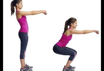 Deberá estar parado con los pies ubicados al nivel de las caderas, puede sostener dos pesas con las manos y llevarlas a la altura de los hombros, hará que sus abdominales estén contraídos. Pude doblar las caderas y rodillas haciendo presión hacia atrás y quedando de cuclillas.
