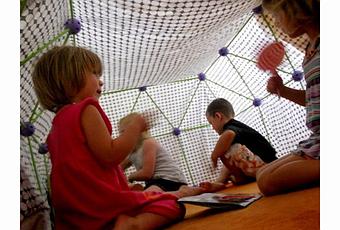 Que son unas varillas y unas bolas que dan la opción de crear mil formas y estructuras para volar la imaginación, lo que siempre hemos realizado con almohadas y con sillas pero en versión moderna, lo cual me parece una idea genial y estoy pensando seriamente regalarle uno de estos pues estoy segura que lo pasarán genial.