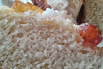 Ahora viene otro problema, al incorporar la masa madre a las cantidades empleadas el año pasado en mi roscón observo que queda la mar de pegajoso. Por lo que nuevamente debo aumentar la cantidad de harina. No me quedaba más de la marca que mencioné. Me vi completando con harina normal y rezando para que saliera algo medianamente decente. En este proceso también empleé levadura de panadero seca y, por supuesto, una pizca de sal.