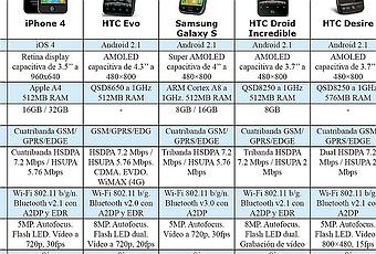 La lista ’suena’ a alta tecnología y grandes prestaciones: iPhone 4, HTC Evo, Samsung Galaxy S, HTC Droid Incredible, HTC Desire, Google Nexus One…