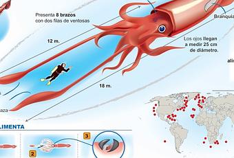 Es muy interesante el caso de los calamares gigantes o Architeuthis, estos animales generalmente viven en las profundidades del oceano donde su gran ojo les sirve para aprovechar la poca luz que llega, además de que su principal predador es el cachalote por lo que es común encontrar marcas de ventosas de calamares gigantes en la piel de los cachalotes. Debido a lo dificil que es encontrarlos in vivo además de que los que llegan a las costas muertos no siempre están en buen estado el poder clasificarlos ha resultado muy complicado pero se sugiere que hay 9 especies distintas de estos calamares gigantes.