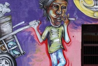 Street art en el estacionamiento del predio del Mercado de las Pulgas, en Buenos Aires.