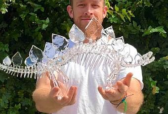 David White es un artista de New Orleans, Louisiana (Estados Unidos) especializado en la creación de esculturas de vidrio soplado. Su primer contacto con este arte tuvo lugar cuando era estudiante de primer año en la Tulane University. Durante su graduado, había asistido a todas las clases de soplado de vidrio y además acudía al estudio independiente de Gene Koss, fundador del programa Tulane Glass, y tras acabar sus estudios, se puso en contacto con Andrew Jackson Pollack para aprender a trabajar con el fuego bajo su tutela. Desde pequeño, el trabajo soñado de David era hacer modelos de dinosaurios para museos y por ello, ahora una parte importante de su obra se inspira en los gigantes mesozoicos. Puedes conocer más sobre su trabajo en su página web o en su cuenta de Instagram.