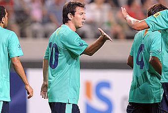 Messi ingresó a los 30 minutos, con el Barça cayendo por 2-1 producto de los goles de Choi Sung-kuk (1m) y Lee Dong-gook (35m). Zlatan Ibrahimovic, de buena presentación compartiendo la ofensiva con los canteranos Benja y Edu Oriol, había igualado transitoriamente (6m).
