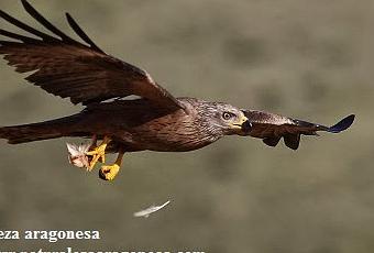 Descripción.El Milano negro es una rapaz de un tamaño mediano, con unas alas uniformemente anchas y la cola larga y ligeramente ahorquillada, con una forma de V muy abierta que en ocasiones parece recta. Esta característica la diferencia muy bien del resto de rapaces presentes en Aragón. La coloración es de un tono general marrón oscuro con unas manchas pálidas bajo las alas, en la cabeza y el cuello. Tiene un vuelo planeado y oscilante, girando y retorciendo la cola frecuentemente a modo de timón.