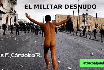 ¿Qué pasa con el militar desnudo? Es un hombre que tiene o sufre los mismos problemas por los que está pasando la sociedad con la que convive, su comportamiento con esa sociedad será recompensado o se le devolverá como un bumerán si fue de odio o de amor. Muchas veces un uniforme es sólo eso “Un uniforme” pues él no hace al portador más gente y menos gente, es el portador él que se hace digno y respetable del mismo. Los tiempos pasan como los puestos y las carreras, el militar no debe obedecer una ideología o posición política ya que su tarea y deber es otro. El militar desnudo vuelve hacer el hijo que su madre no quiso que creciera, el hermano que es juguetón y cariñoso, el amigo fiel e incondicional, el padre amoroso y responsable, el esposo fiel y cumplidor , no ese hombre que por reprimir a una sociedad que reclama sus derechos lo verán con el tirano de la cuadra o del barrio.Bien lo dijo Simón Bolívar: “Maldito el soldado que dispare contra su pueblo”El militar desnudo debe ser el hombre que con uniforme o sin él, sea un hombre que se mire en el espejo donde se ven sus conciudadanos que, esperan de él un amigo defensor de su isonomía y de su libertad.