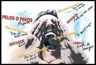 Entresacando algunas expresiones observamos que emplean una especie de collage de procedimientos lingüísticos que dan como resultado expresiones originales (hacen uso de préstamos de otras lenguas,