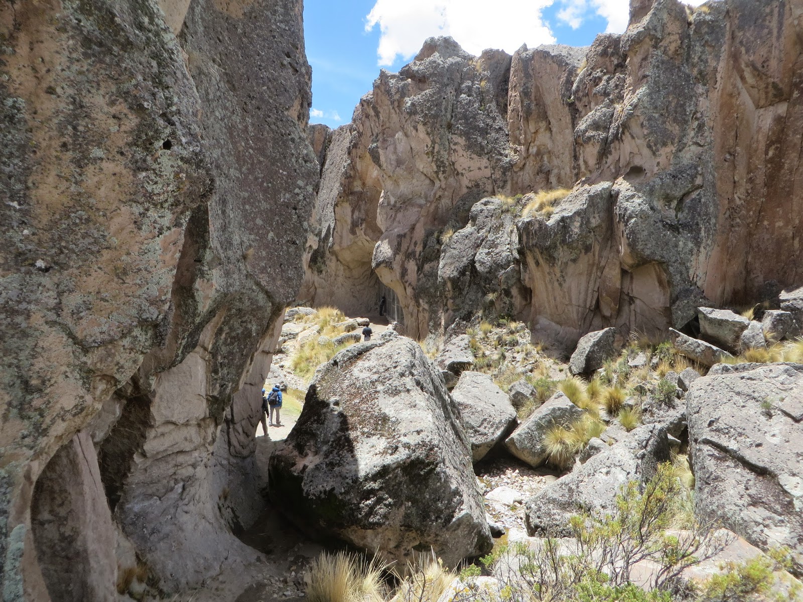 Luego de fotografiar el arte rupestre nos pusimos a contemplar con mas detenimiento la zona y nos dimos cuenta que parece una escena sacada de película, es un cañón muy estrecho en cuyas paredes hay nidos de aves de rapiña, el ambiente es siniestro, el silencio es sombrío y el escenario parece despojado de un libro de suspenso, me imagino que los antiguos peruanos usaron este lugar para protegerse del duro frío que hace en la zona.