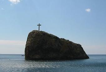 Conocida como Cruz de la roca o, alternativamente, la Roca de la Santa Imagen, es un homenaje solitario y sorprendente a la fe local. La interesante historia de este singular homenaje cuenta que un barco con cientos de marineros griegos fueron atrapados en una tormenta en el año 890 que amenazaba con matarlos a todos, por lo que se pusieron a rezar a San Jorge en busca de ayuda. El santo amablemente apareció en la roca y le dijo a la tormenta que se calmara, lo que esta hizo. Como agradecimiento por sacarlos del peligro, los marineros crearon un monasterio en la costa, cerca de donde se salvaron.