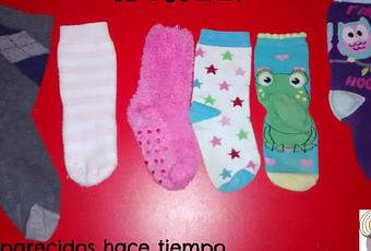 Adjunto fotos de los calcetines que llevan mucho tiempo sueltos, por si alguien los ha encontrado en su casa. Y del calcetín que no es mío, si alguien lo reconoce se lo mando encantada.