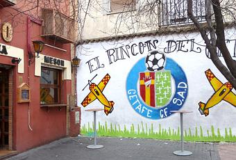 Alguien, no sabemos quién a pesar de las pesquisas, tuvo una gran idea. La tapia del caserón que interrumpe la alineación del principio de la calle Leganés y que hace, —hablando en términos futbolísticos— un bonito córner con la fachada del Bar Órdado desde el que se disfruta del rumor de la pequeña catarata bajo el jardín vertical estaba pidiendo una valla publicitaria. Un lugar donde es frecuente ver al presidente del Geta tomando algún refrigerio o aperitivo. Si hemos de reconocer algo de Ángel Torres, además de su sabiduría futbolera, es que mantiene sus amistades de toda la vida; y que tiene de manera asidua, si no diaria, su punto de encuentro en este céntrico bar restaurante. ¡Quién lo ignora! Y ese alguien, ignoto y pequeño genio, pensó que venía al pelo dar nombre al esquinazo. Pintura y hecho. Llamativo y fulgurante reclamo publicitario, un poco infantil a pesar del adorno de los avioncitos, de pintor de brocha gorda....