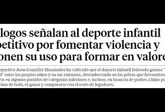 "El deporte infantil federado genera "violencia y competitividad" entre los propios niños y en sus entornos, desembocando en las peleas que frecuentemente se pueden observar en algunos partidos de categorías inferiores e, incluso, en broncas de padres a hijos porque lo que prima, por encima de todo, es ganar y compararse con el resto de jugadores."