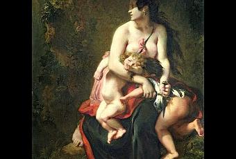 El gran poeta y escritor Eurípides, en su famosa tragedia griega, relataría así ese momento: ¿Por qué me volvéis, mis hijos, la mirada hacia mí, dedicándome esa última sonrisa? ¡Oh, no, no, alma mía, no lo hagas; infeliz, no cometas tal crimen! ¡Déjales, a tus hijos perdona! Pero, no, yo no voy a dejar a mis hijos a que sean ultrajados. Comprendo que crimen tan grande voy a osar, pero en mis decisiones impera la pasión, que es la mayor culpable de los males humanos. Y es en ese preciso momento cuando el pintor clásico compondrá su escena pictórica. Siglos después, la escuela romana de Pompeya elaboraría un fresco para la casa de los Dioscuros donde, también, plasmarían ya ese mismo instante clásico. Medea estará de pie, a la derecha, mientras sus hijos juegan al cuidado de su preceptor. Aquí aparecerá ahora una serena Medea con el silencio atronador más espantoso, con ese con el que antecederá al momento de la decisión de su crimen. Pero, sin embargo, nada hará presagiar aún que algo terrible se vaya a cometer, ni que se cometa.