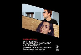 Buenatarde nos presentará en la noche del 26/2 sus mejores temas, por un lado un sonido muy underground con la firma de Mané López como productor y artista en un proyecto en solitario. Se une El momento incómodo proyecto que cuenta con miembros de Paracusia y Blue Boredom en sus filas,#Datos:26/220:00Moby Dick Club,Entrada Anticipada 10€+ gg / Puerta 12€