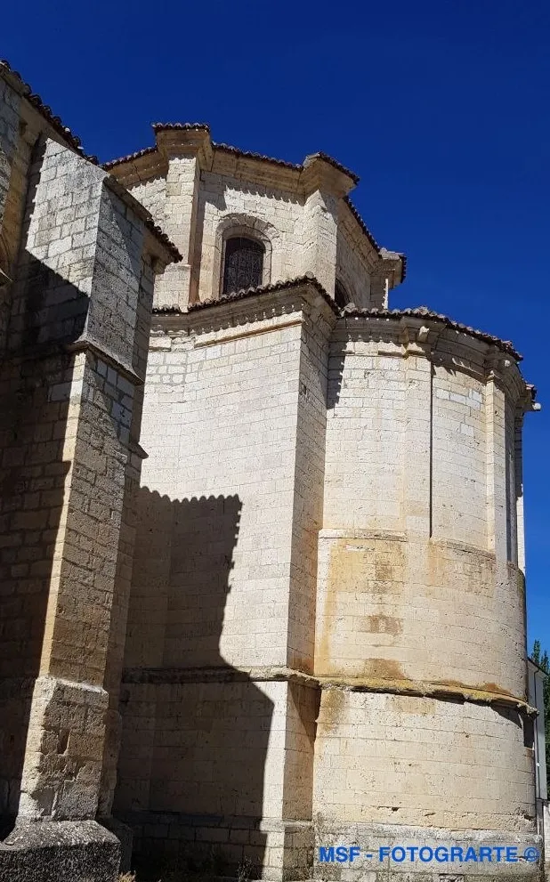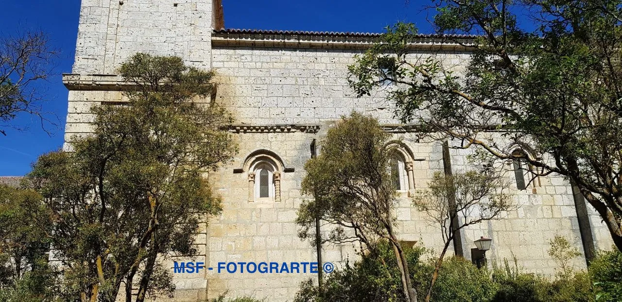 Otra vista de la fachada: en este caso vemos la cabecera de la iglesia con uno de sus ábsides y la bóveda del crucero de la iglesia. / Another view of the façade: here we see the chevet of the church with one of its apses and the vault of the transept of the church.