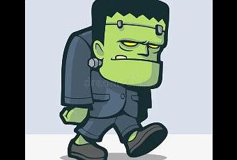 Deslumbrado por la situación, se quedó con los ojos muy abiertos mirando su obra. Aquella criatura le pareció bella, a pesar de su metro noventa y ocho, sus cicatrices, sus remaches y tornillos, sus zapatones y su pelo recortado a trasquilones. El monstruo abrió primero un ojo, después el otro, y se quedó mirando fíjamente a Víctor Madenstein. Luego, tras emitir una especie de carraspeo, se incorporó, rompiendo correas y abrazaderas, y dijo: