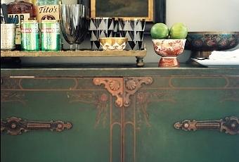 Un práctico aparador toma forma nueva y nueva impronta. Un mueble mediano o bajo, que deje aire por arriba. Puede ser vitrina o armario de dos puertas reciclado. Es importante la apariencia. Como importante lo que contiene. Las copas buenas, pócimas y brebajes de sábado.