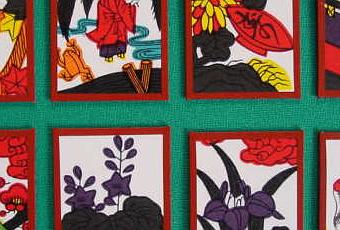 Cartas Hanafuda pertenecientes a la línea 'Nintendo Miyako No Hanafuda'.