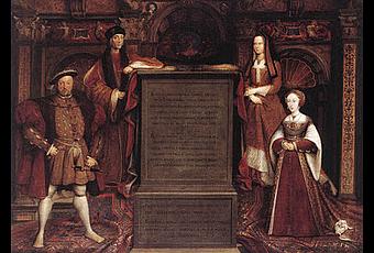 La representación más importante del rey Enrique VIII fue pintado en 1537 por Hans Holbein: el mural de Whitehall. Plasmado en una pared del palacio real del mismo nombre, aparece el monarca con su tercera consorte, la reina Jane Seymour, así como los soberanos anteriores, los padres del rey, Enrique VII e Isabel de York.
